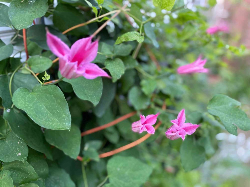 クレマチスは春先に伸びて来た蔓を一度短く✂️剪定してやると、またワサワサ伸びて花芽が付きやすくなるようです〜