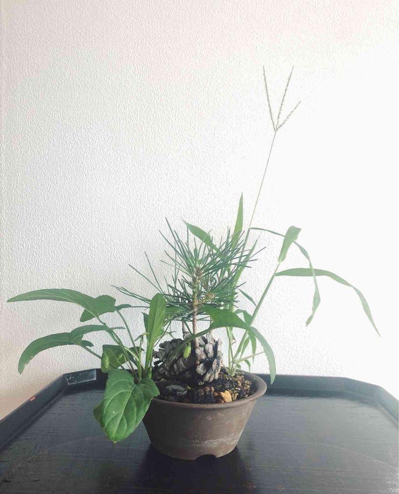 私も盆栽に生えた草をよくそのままにしているけど、この場合、ちょっと松が可哀想ですよね。😅💦