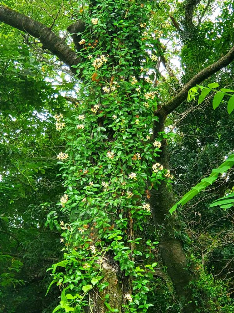太い木に白い花💠が絡んで上へ上へと花💠を咲かせてました✨