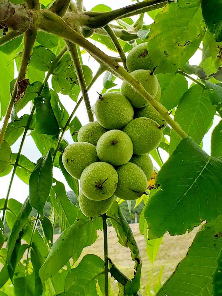クルミ懐かしいです🙋実家(弘前)に居た幼少のころ、祖母と実を棒で落として拾い、干して外の皮が取れたら~金槌で叩いて食べていました😅約50年ぶりで実っているの見させて頂きました😊ありがとう🙆