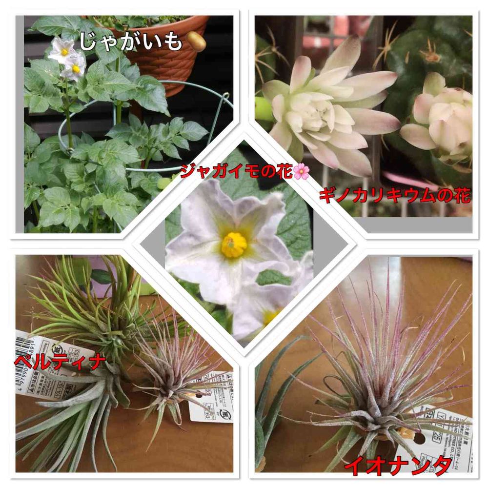 左上▶️芽の出たじゃがいも🥔を植木鉢に埋めて見たところ立派に成長してお花が咲きました😍🌸