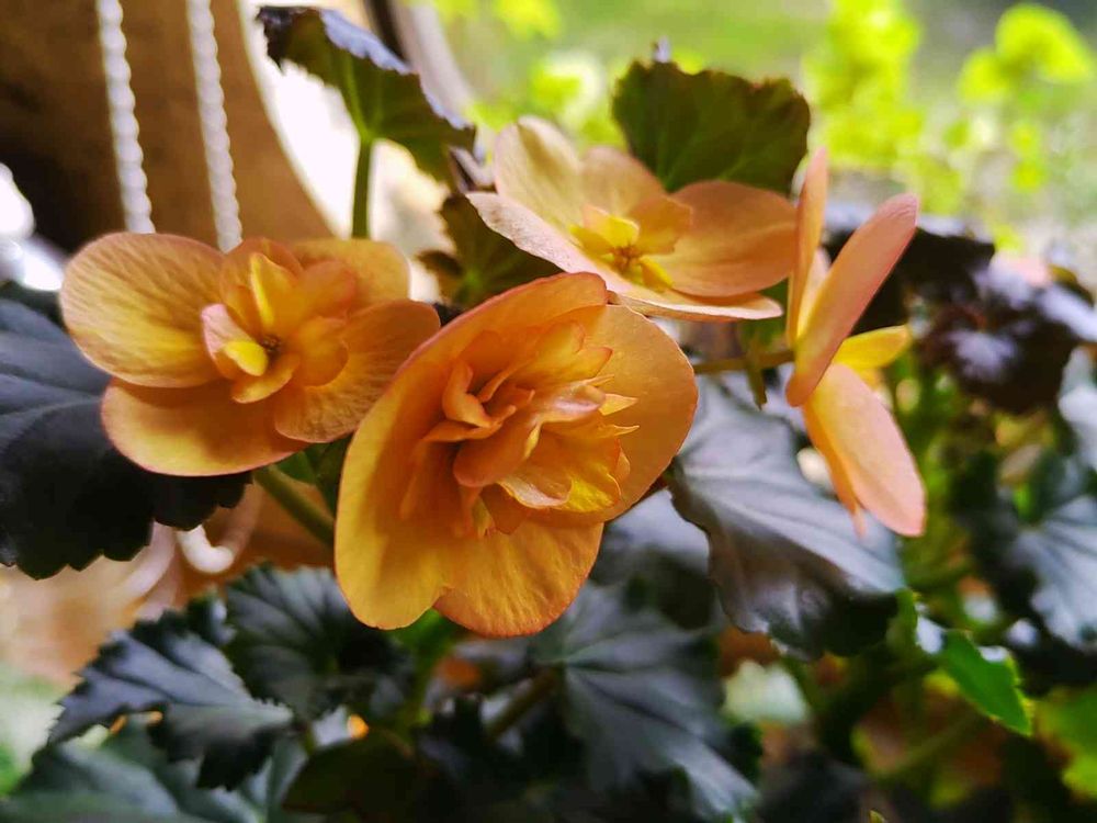 シックで素敵なオレンジ色の花と葉っぱも銅葉でお洒落なベゴニアさんですね😃