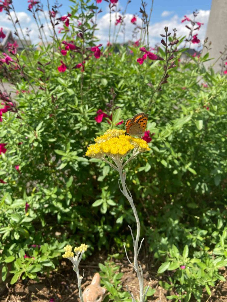 シルバーの葉っぱに花は鮮やかな黄色🌼