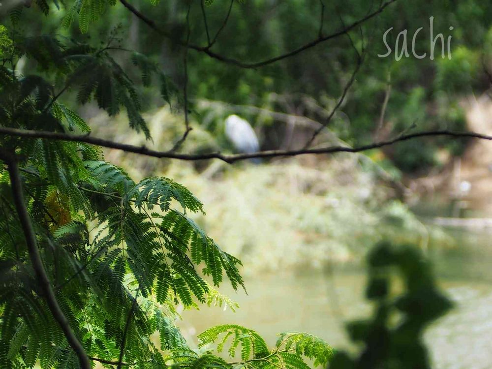 「ネムノキ」の隙間から覗く川には「アオサギ」が羽を休める美しい光景が…野鳥の楽園です🐦🐦🐦👍😊