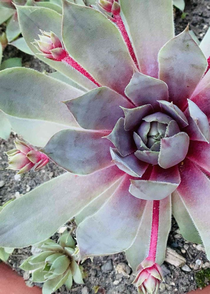これね、多肉植物の中でもセンペルビウムと言って雪の下でも冬を越してくれる優れもの。色々な種類があるけど名前は?ですがね😅赤ちゃん子株を伸ばしてどんどん増えるしね。