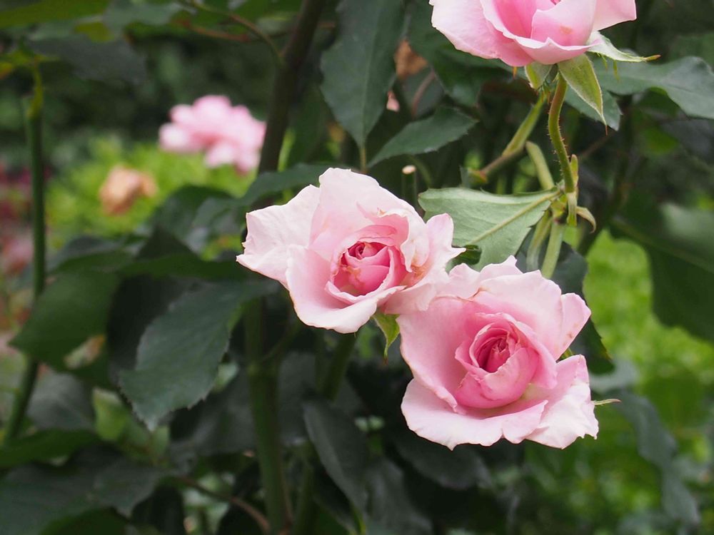 国道沿いのバラ園に可愛いピンクの薔薇❣