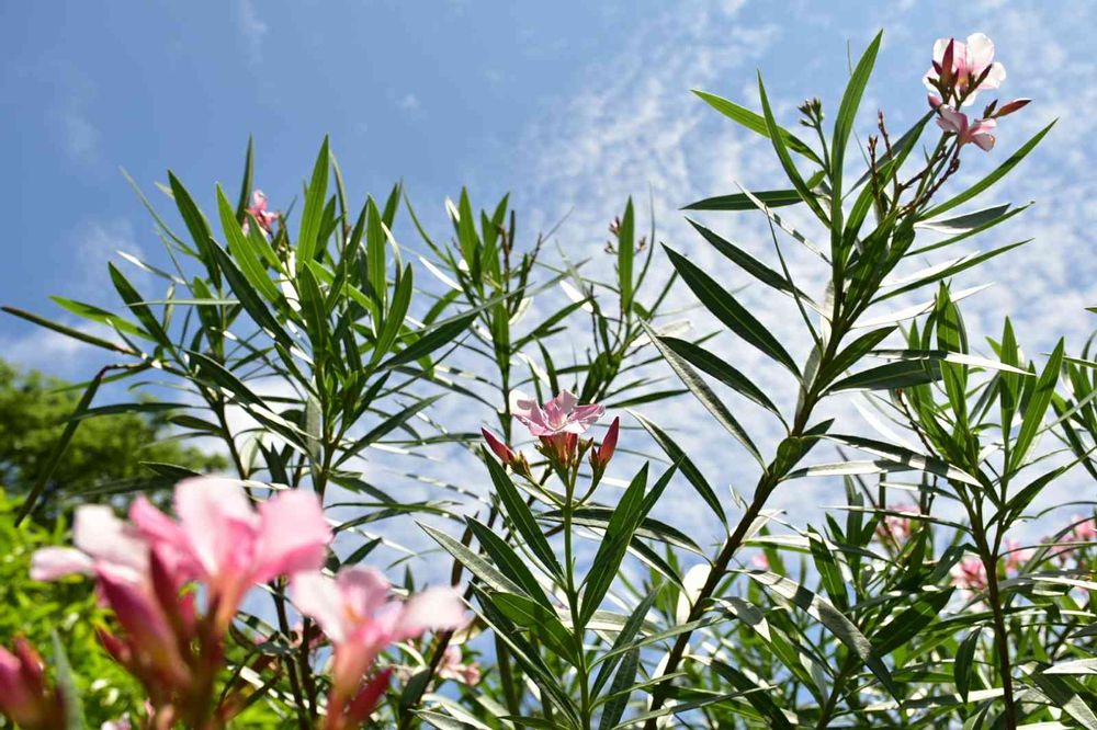 空に届きそう。自由に伸び放題の夾竹桃。ピンク。