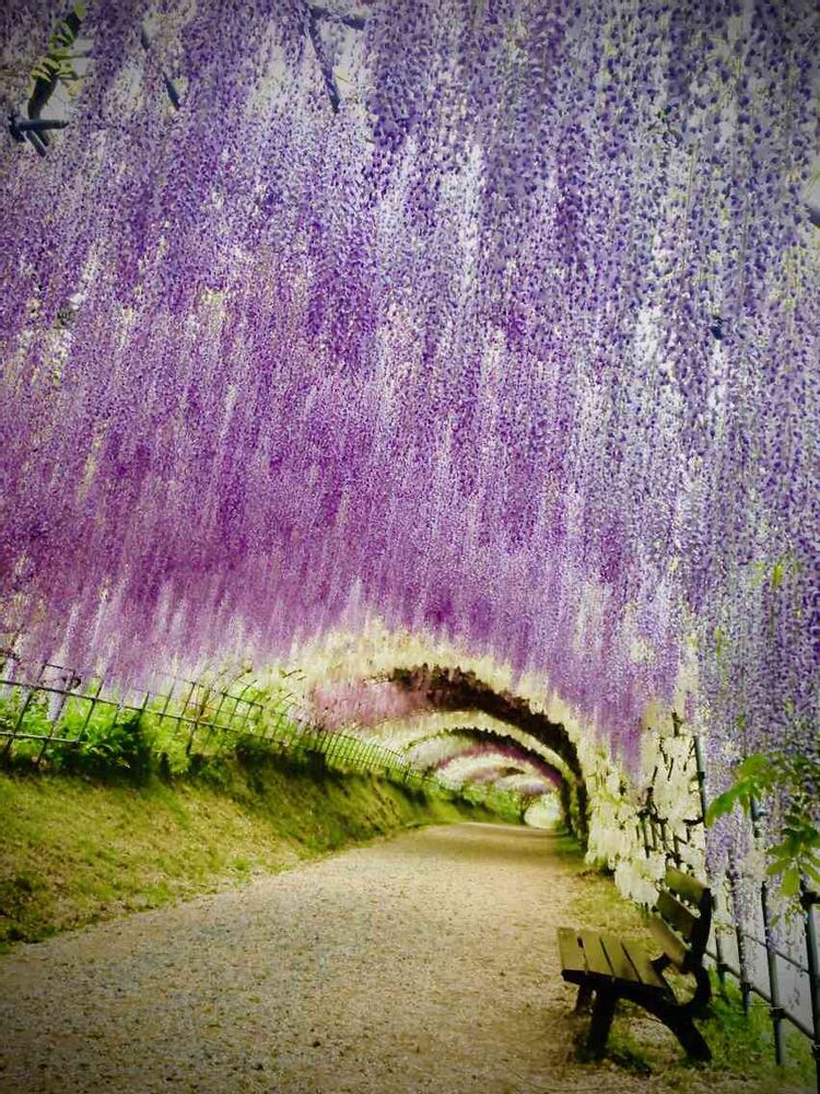 藤のトンネルは福岡県にある河内藤園で見学出来ますよ〜藤の季節に是非遊びに来て下さい🎶(地元民)