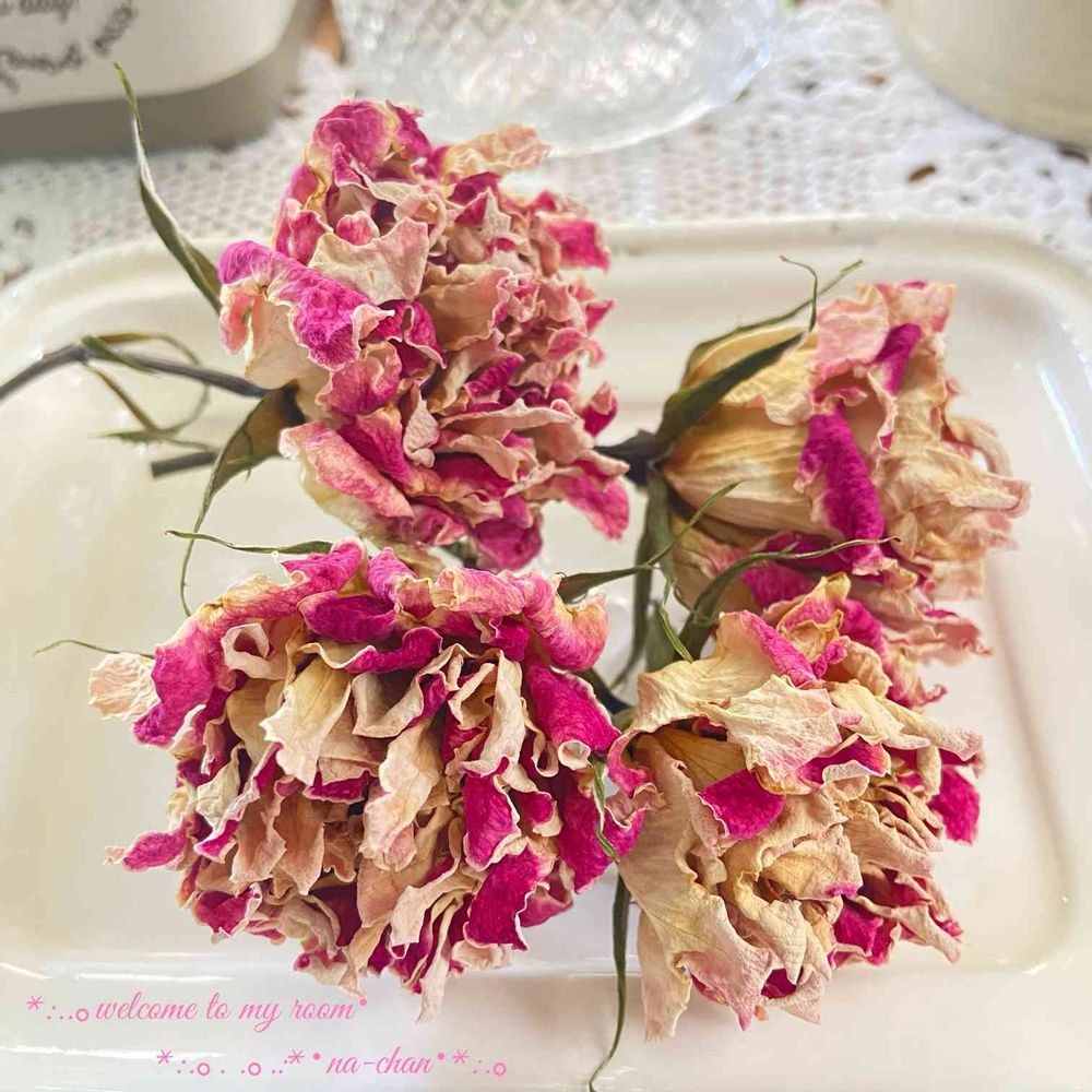 ピンクレディーラッフルをドライにすると、一際花弁の裏の色とのコントラストが際立ちます🌹
