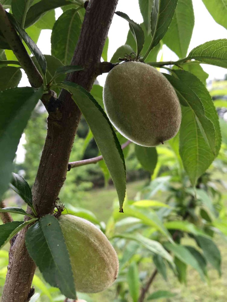 おわぁ!!キウイ🥝かと思いました😅💦そうか…桃にも産毛ありましたね⭐️初めて桃の赤ちゃん見れて嬉しい😆✌️