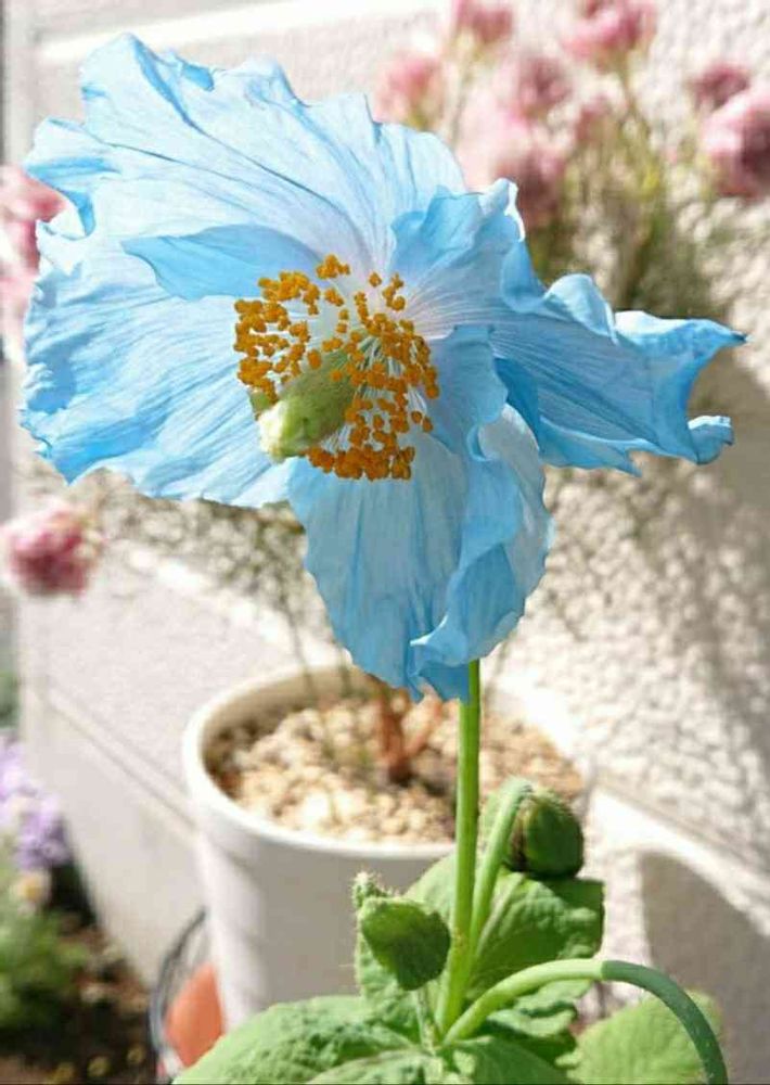 青いケシ大好きで、間近で見たくて育ててます🎵