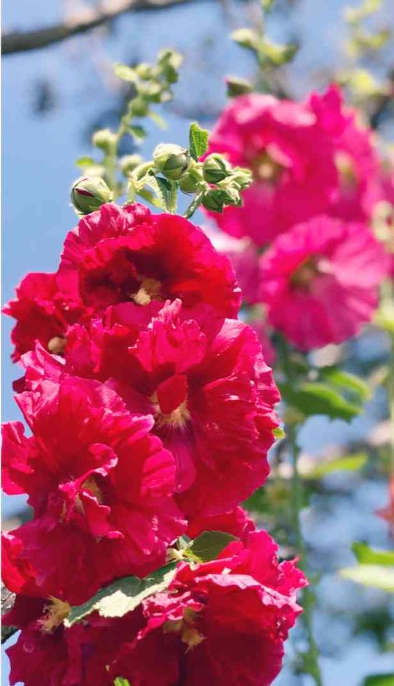 💙青空に向かってまっすぐに伸びるタチアオイ❣️