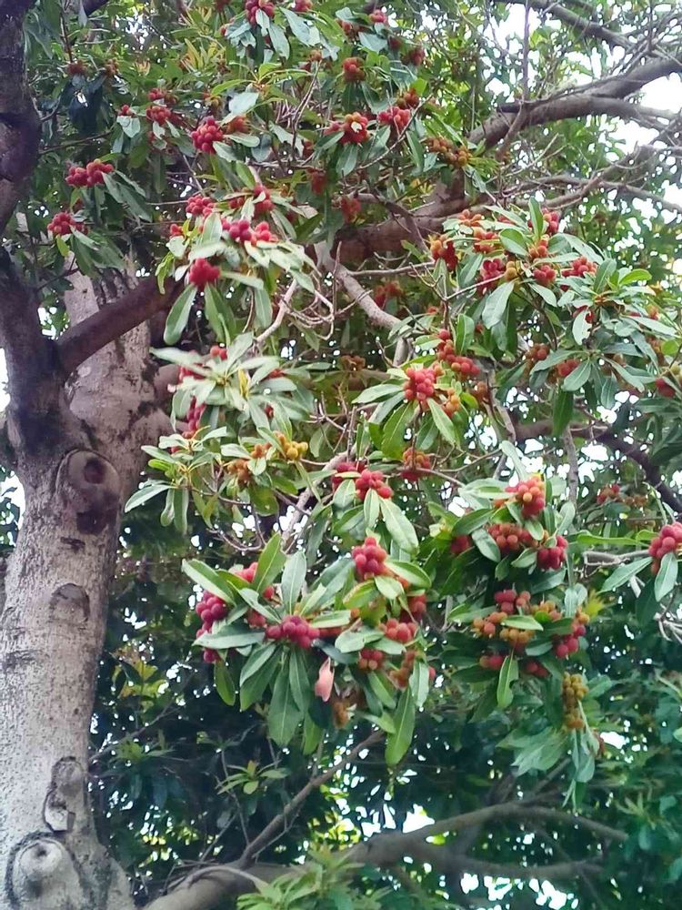 私の側の通りにも ヤマモモの木がありますが、こんなに沢山は実がついてはいませんネ〜