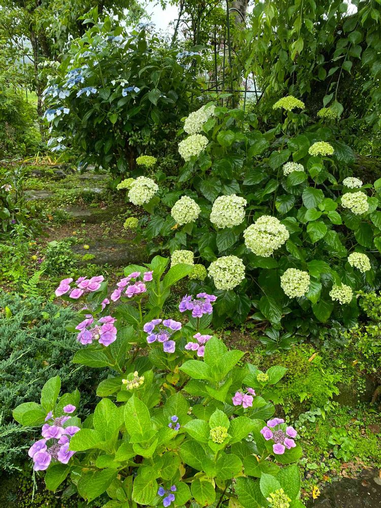 広いお庭に 紫陽花たちが綺麗に咲いていますね。