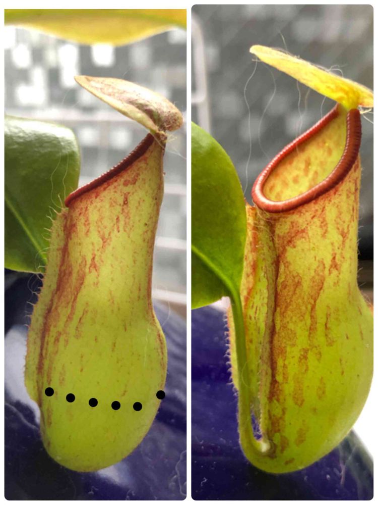 我が家に来て葉が大きくなり壺ができて消化液(?)が貯まりました。