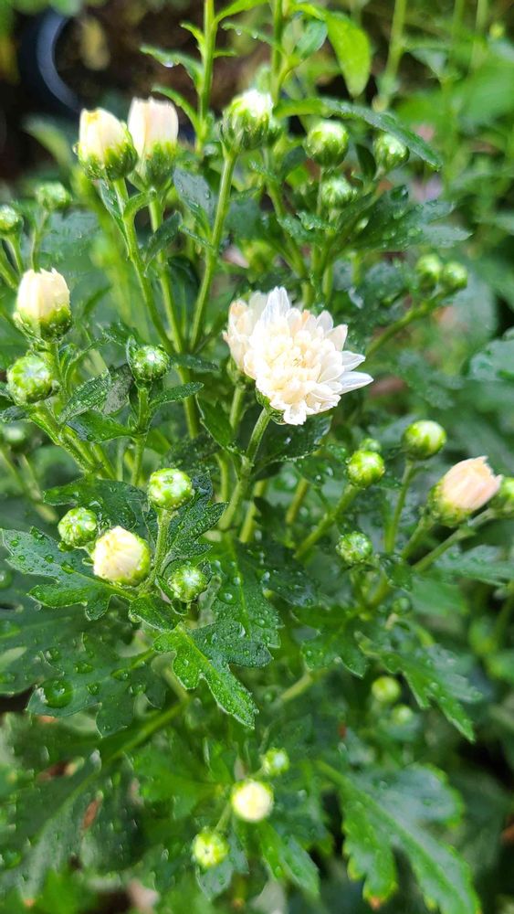淡いクリームが、入った白い小花の菊でした。