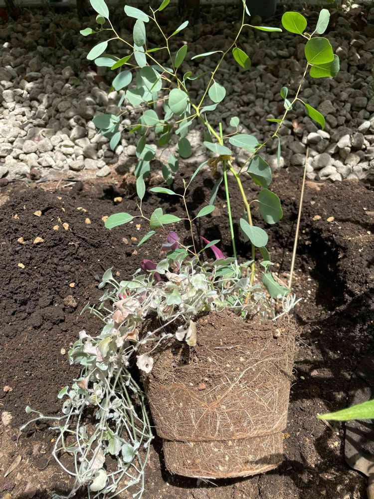 今日雨予報だったので昨日植えまくりました💨お陰で腰と手首が痛いです😵こちらもベランダでコツコツ育てていたポポラスとディコンドラ?と、ムラサキゴテン。引越しの際いかに鉢数を減らすかということで無理くり寄植してたせいで根っこが絡まり合いまたもやギチギチに🙄伸び伸び育っておくれ〜