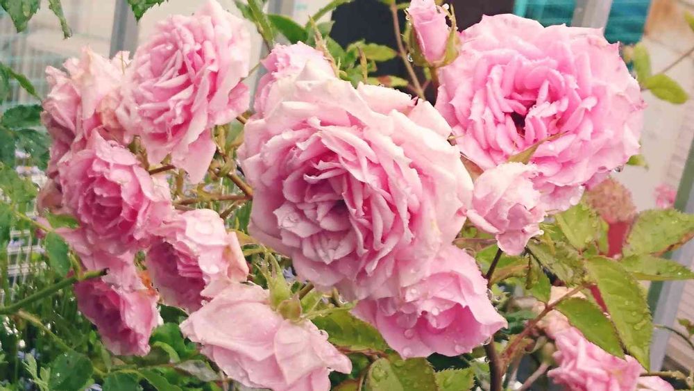 今はもう遅咲きの薔薇の花ばかりですが雨。