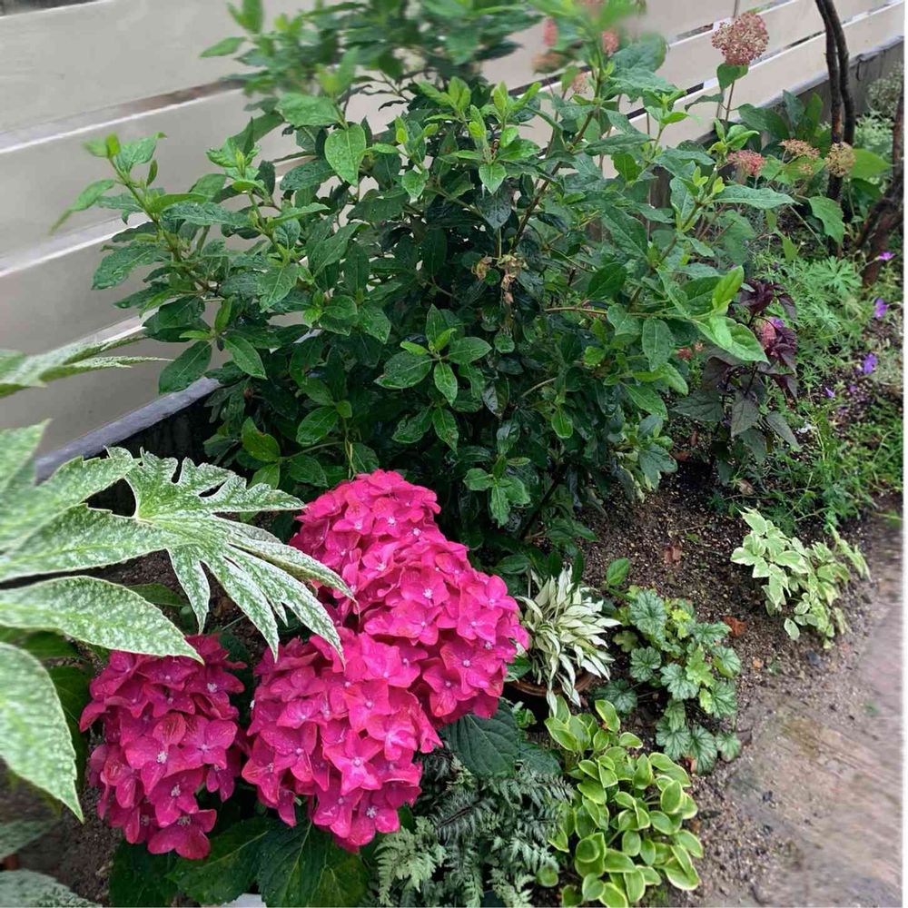 ここはリーフコーナーにしようと思ってシダや小型のギボウシ、ヒューケラをグルーピングしてあります🌿エゴポディウムやユーパトリウムが今後大きくなったらまた少し景色が変わるかな〜と。