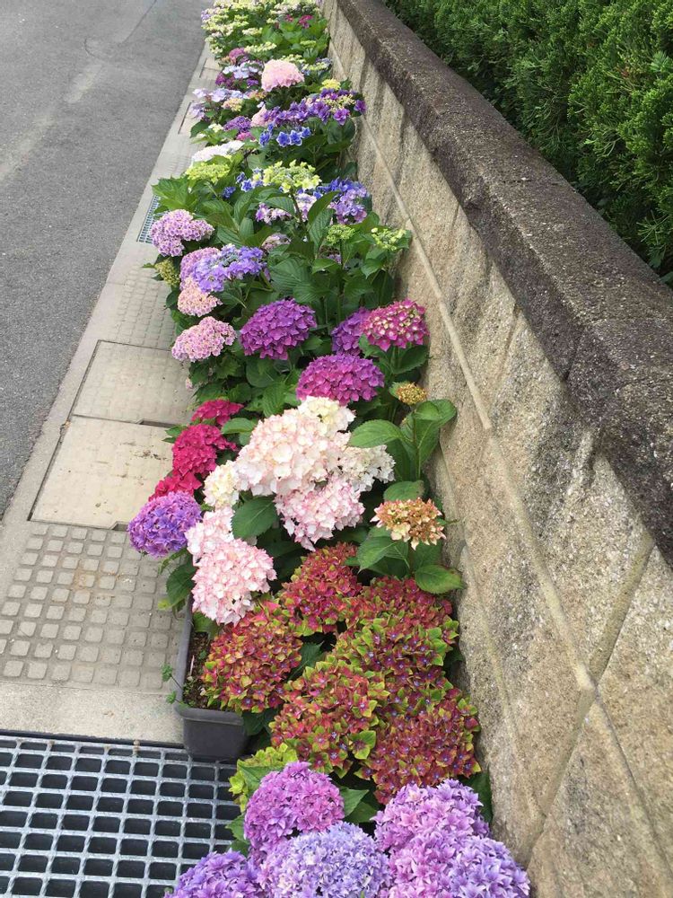 このお宅は裏庭の、玄関口までずーっとアジサイが並べてあるの〜🎶