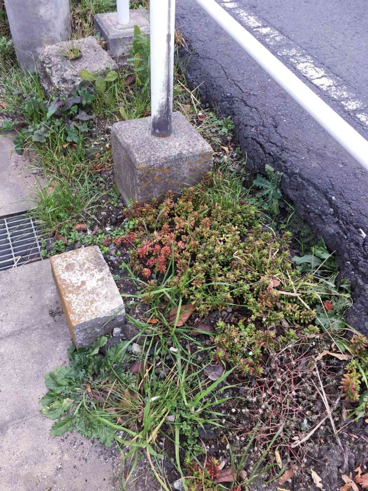 生えてるのは歩道ではなく。排水路の上で蓋があるけど、入らないように柵ありの中どうしてこんなところに…ビッシリ💨