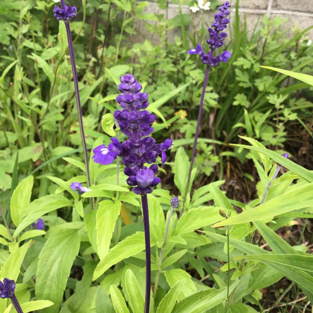 ブルーサルビアが咲いてました。冬越ししてくれて三年めかな?ひっそりと咲いてるのが奥ゆかしい子です。☺️💜