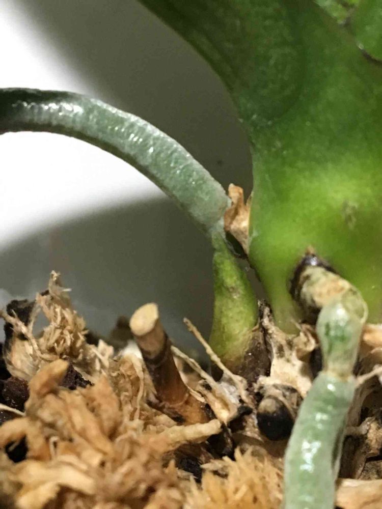 胡蝶蘭の根元に花芽や根とちょっと違う物が発生してます。花芽は写真では見えませんが、別の葉の根本に小さいものが見えます。これは高芽🌱でしょうか?🧐🧐🧐