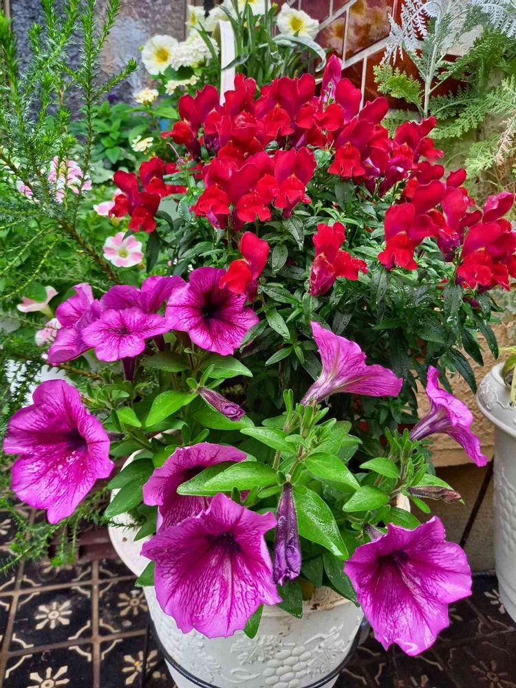 keicyannさんこんばんはm(_ _)m金魚草、ペチュニア、鮮やかに咲いてますね。雨☔でいっそう鮮やかに…
