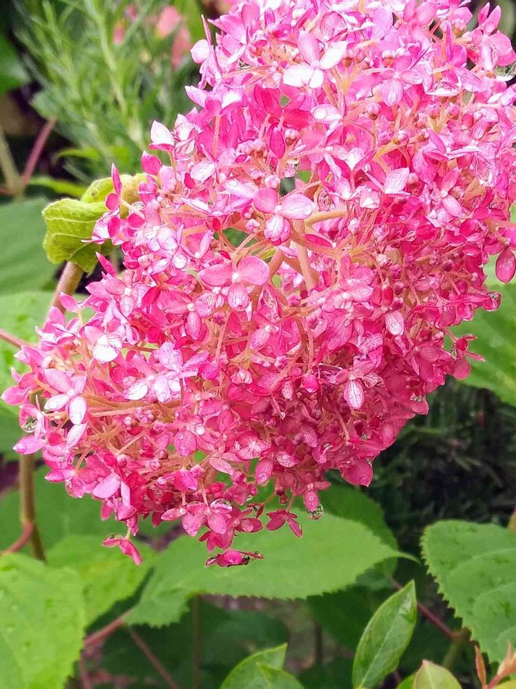 雨上がりにピンクのアナベルが嬉しそう〜🎶私の想像より濃いピンクなのね〜素適🥰💕