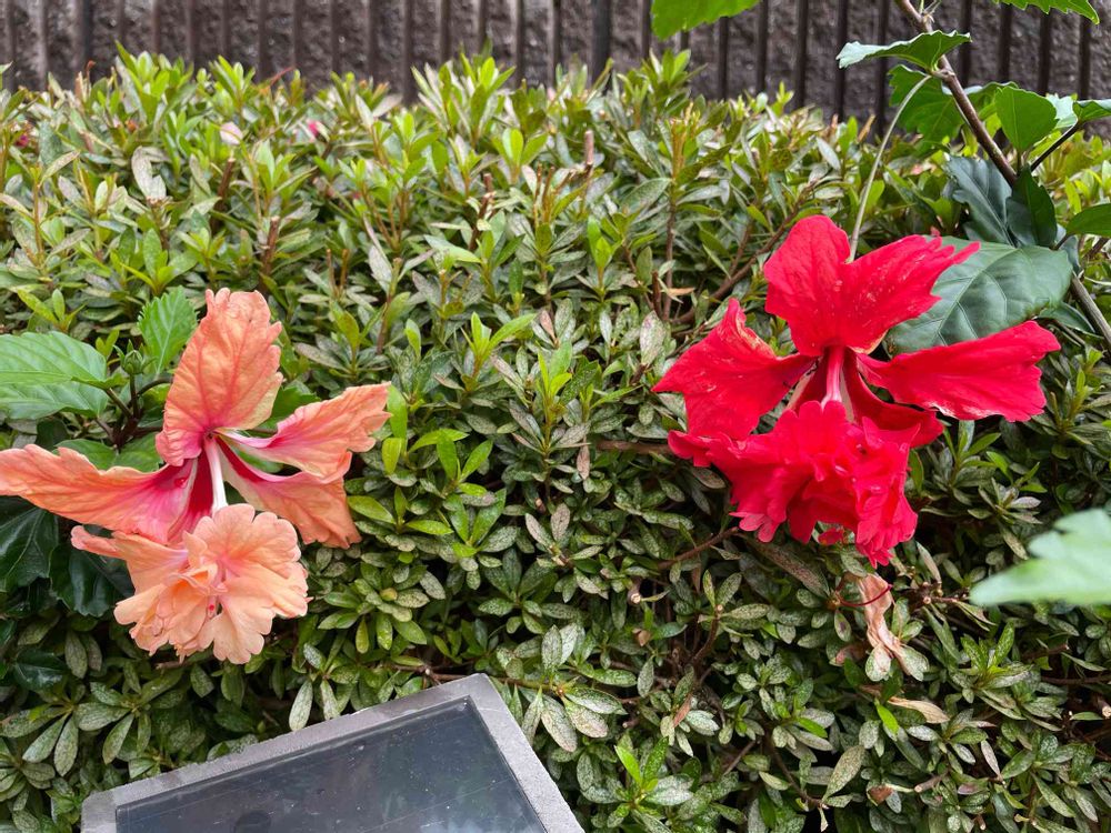 ぷりんちゃんさんのアプローチ,ハイビスカス レッドフラミンゴ,ハイビスカス オレンジフラミンゴの投稿画像
