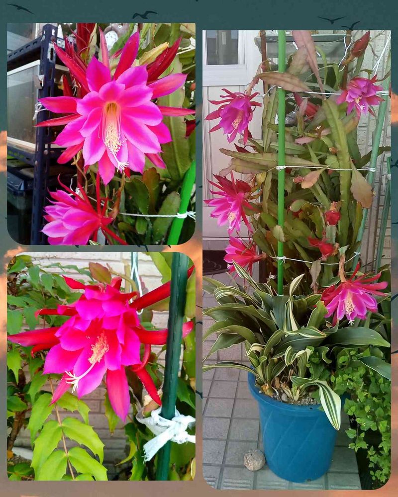 散策の帰り道、通り道のお宅の玄関前に、鮮やかに彩る、クジャクサボテンです。