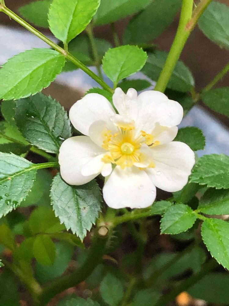 よく降るな〜とベランダに出たら、ポツンと一輪だけ咲いてました🌸