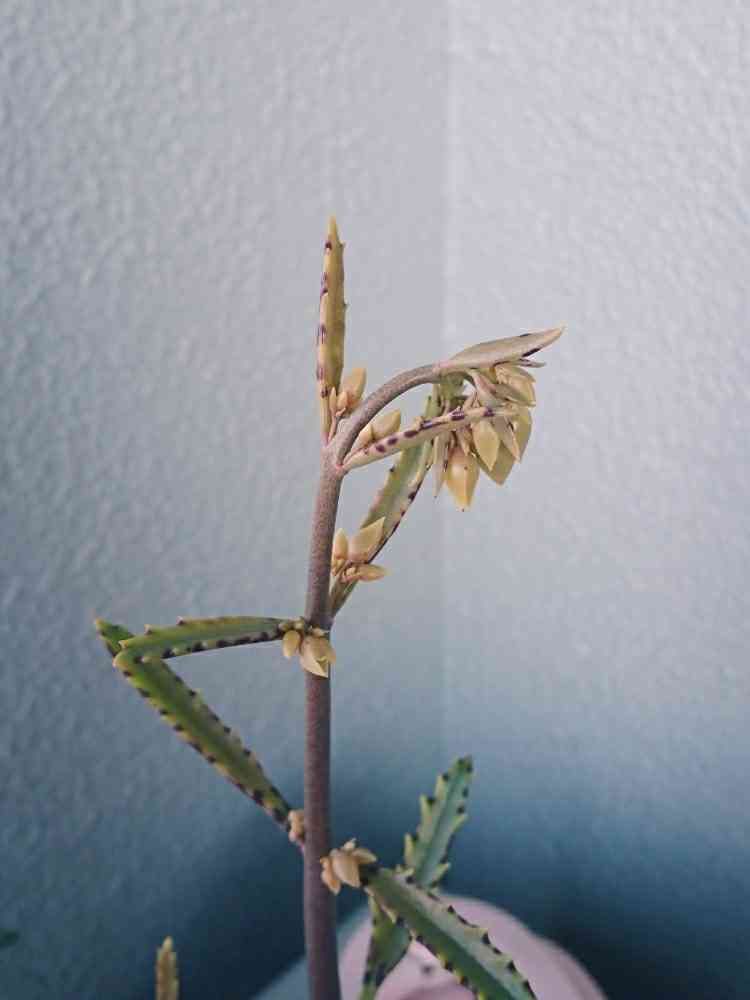 カランコエ・ラウヒー(幸来花)の蕾。冷たい風のなか蕾がついて驚いています。無事咲くでしょうか…。
