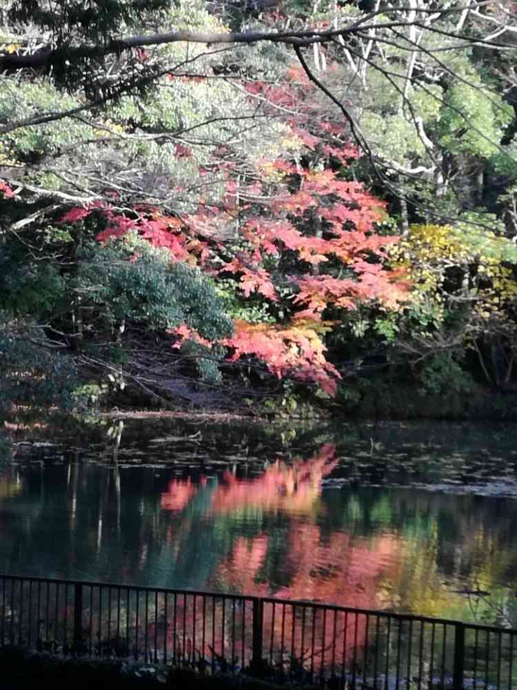 写し鏡のようにとても綺麗な紅葉🍁が水面に……素敵ネ(*˙˘˙)