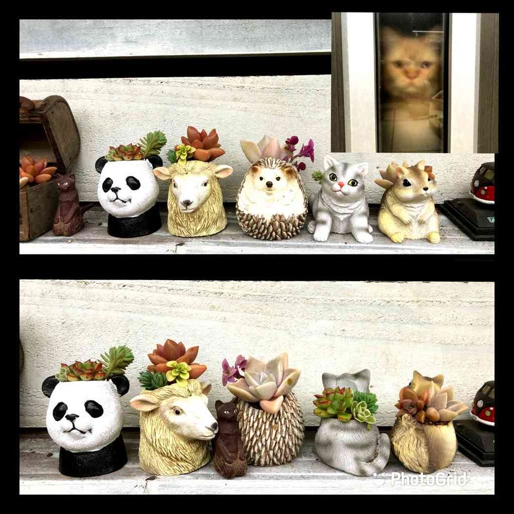 雨の中シュールな寄植え🐼