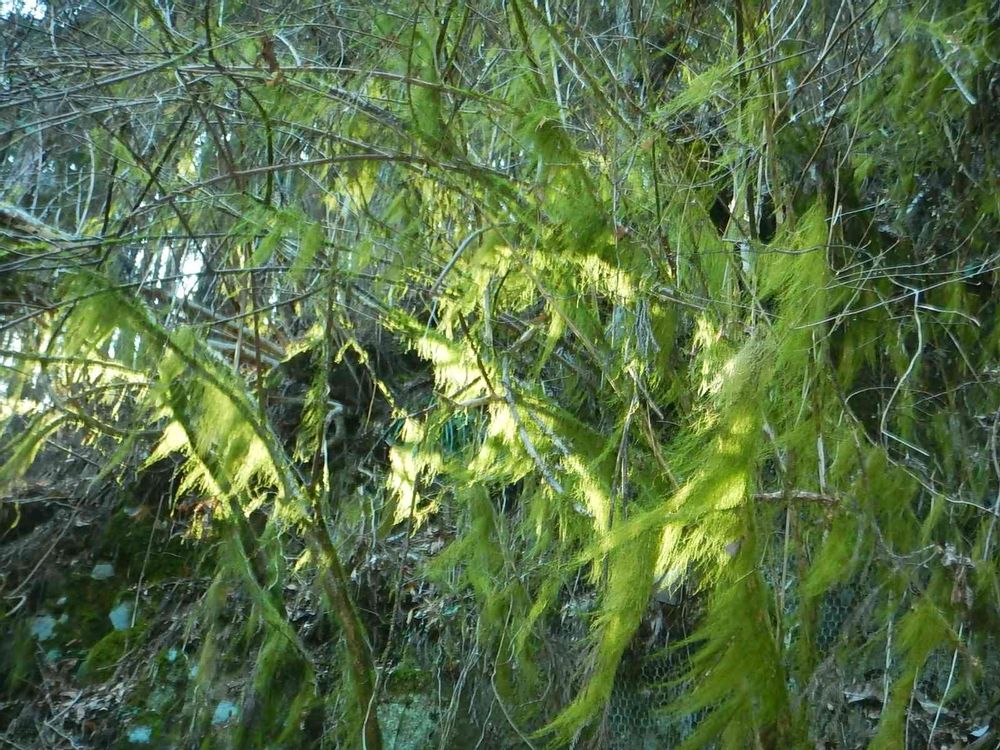 明るい黄緑色の感じや、垂れ下がっている長さが短めな感じからすると少なくともサルオガセではなさそうですね。