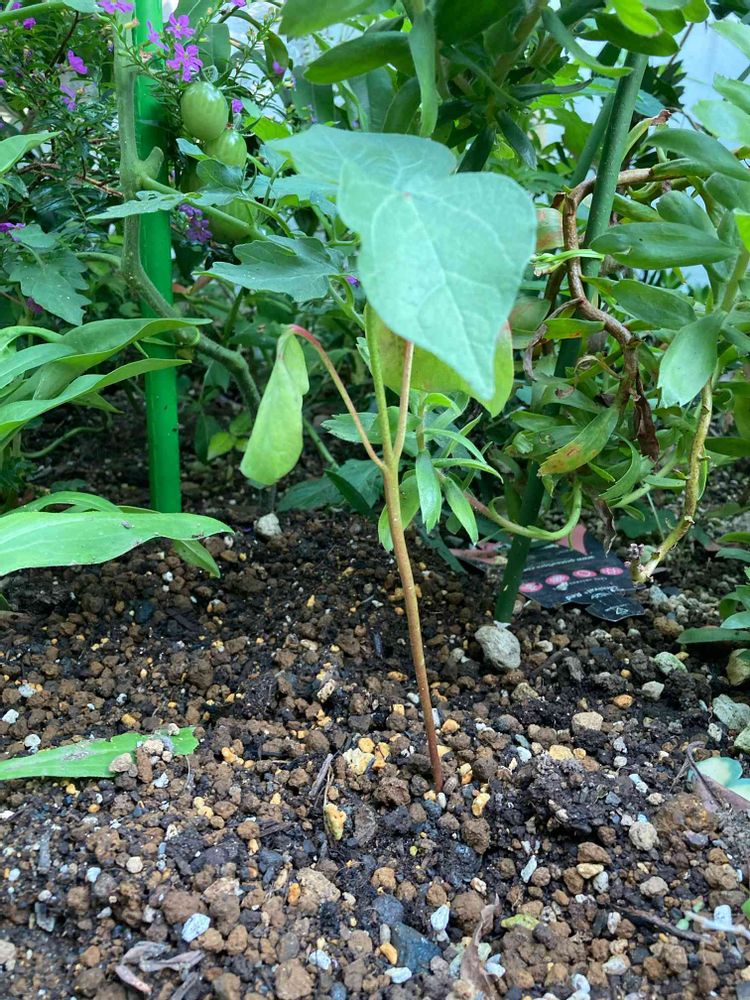 綿の苗、ポットから庭の小さな畑に植え替えました。