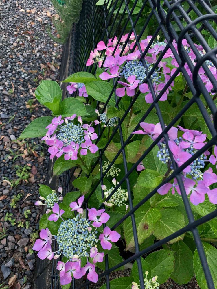 雨を喜んで紫陽花がフェンスから飛び出してます♪