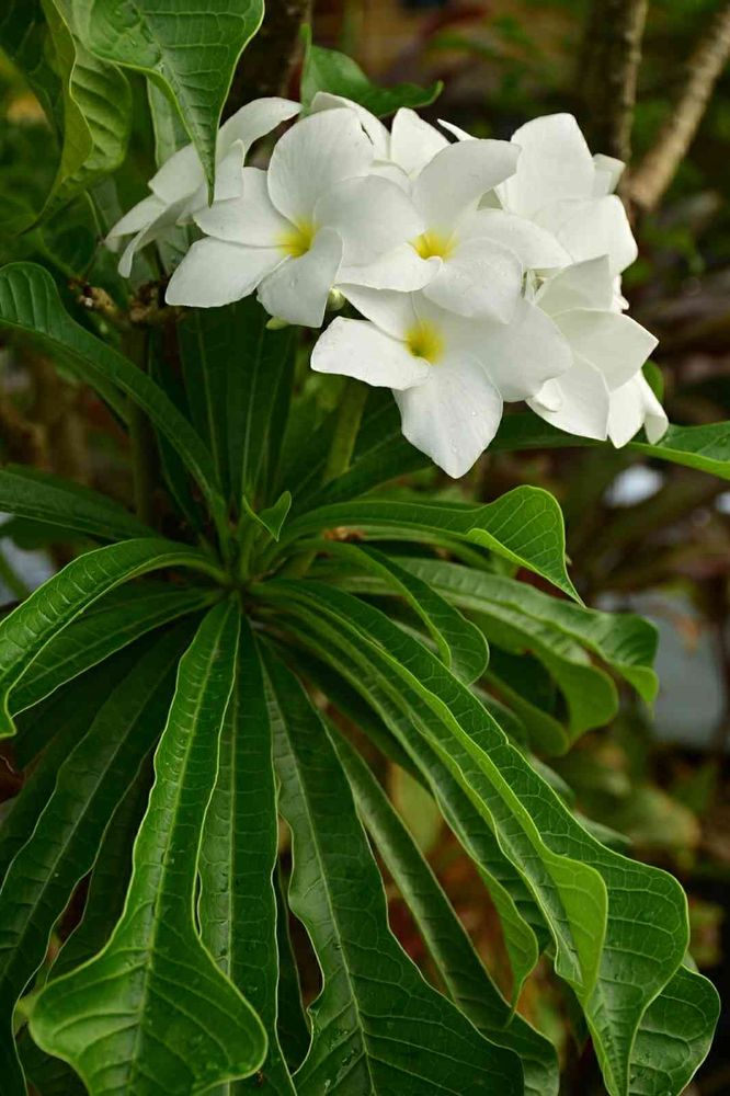 夜間に降った雨に洗われて、葉っぱの緑がとってもイキイキしてたので。🌿 花もピカピカの真っ白。おっはよ〜! 🐦