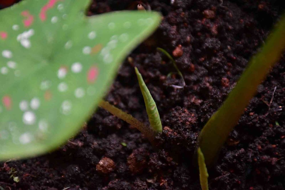 根腐れを起こしたと思われたカラジウムポルカドット。この間の新しい芽から小さな葉っぱが開いて、その後からも続々と新芽が。🌿 やった〜!! 良かった。😄 無事復活してくれそう! ❤