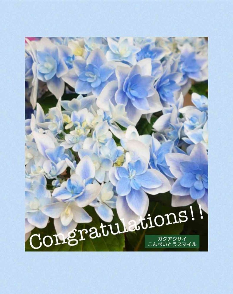 爽やかブルーのこんぺいとうスマイル 素敵で可愛い紫陽花の花💠のお祝いpic感動しております。嬉しいです。ありがとうございます🥰