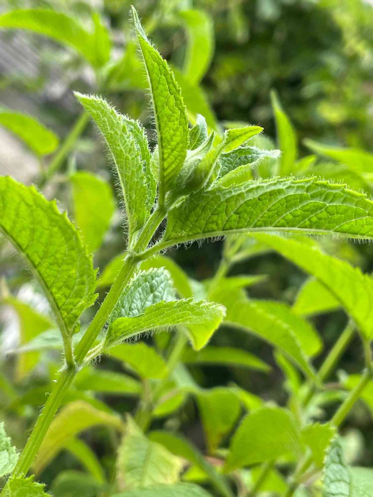 よく見ると茎に2本両手を広げているみたいな葉っぱが対で左右にあります。
