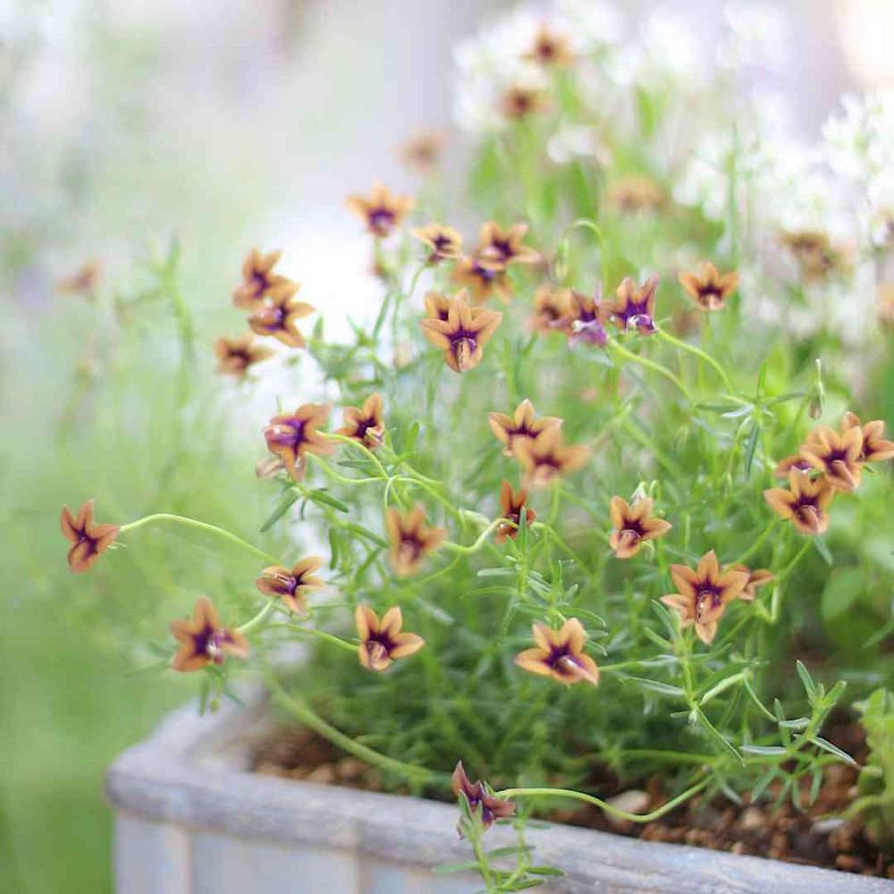 細い茎の先に小さな花、大好物です(ꈍ◡ꈍ)キュンキュンしてしまいます💕モカの花びらに中心の紫がとってもオシャレ😘
