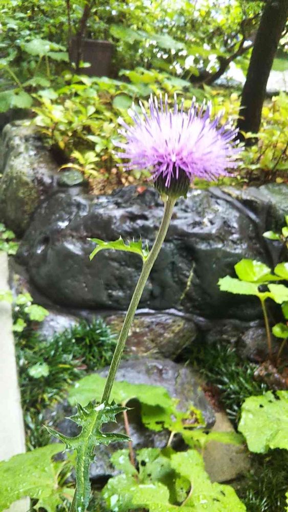アザミが、毎年、種がとんでいるのか どこかで 一本 咲いてくれます。💜
