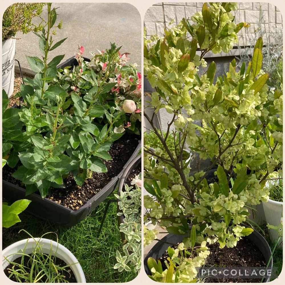 最近ぐんと成長したピンク桔梗風船の様な🎈蕾が膨らんで来ました咲くのが楽しみ🎵➡️はドドナエアさん種が入った鞘?