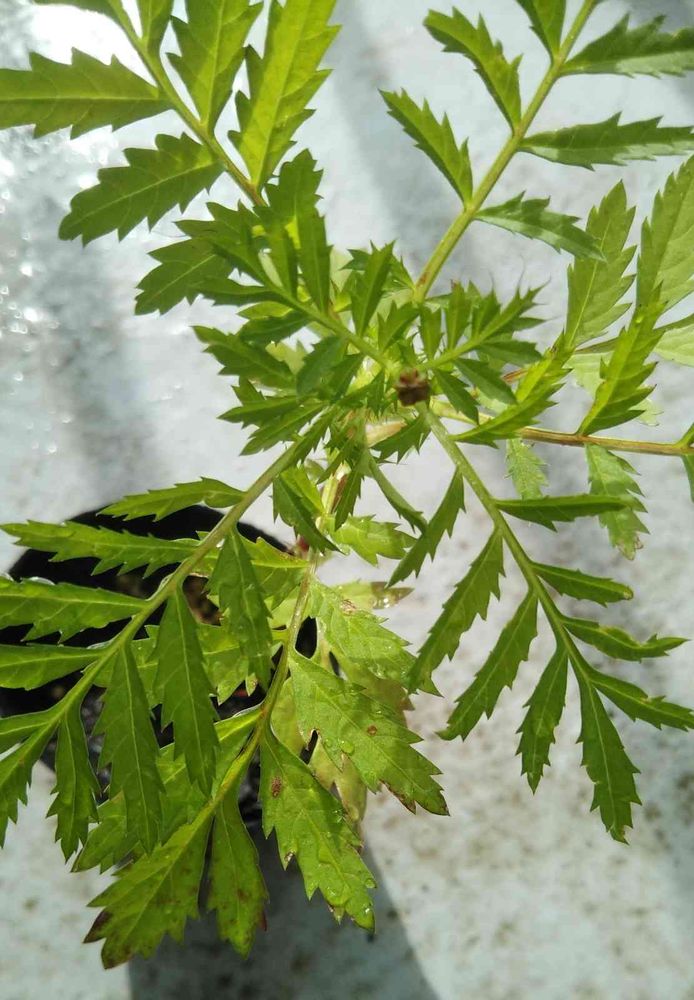 4月に種まきしたエディブルフラワーのマリーゴールドに初めて蕾らしきものがつきました🌱