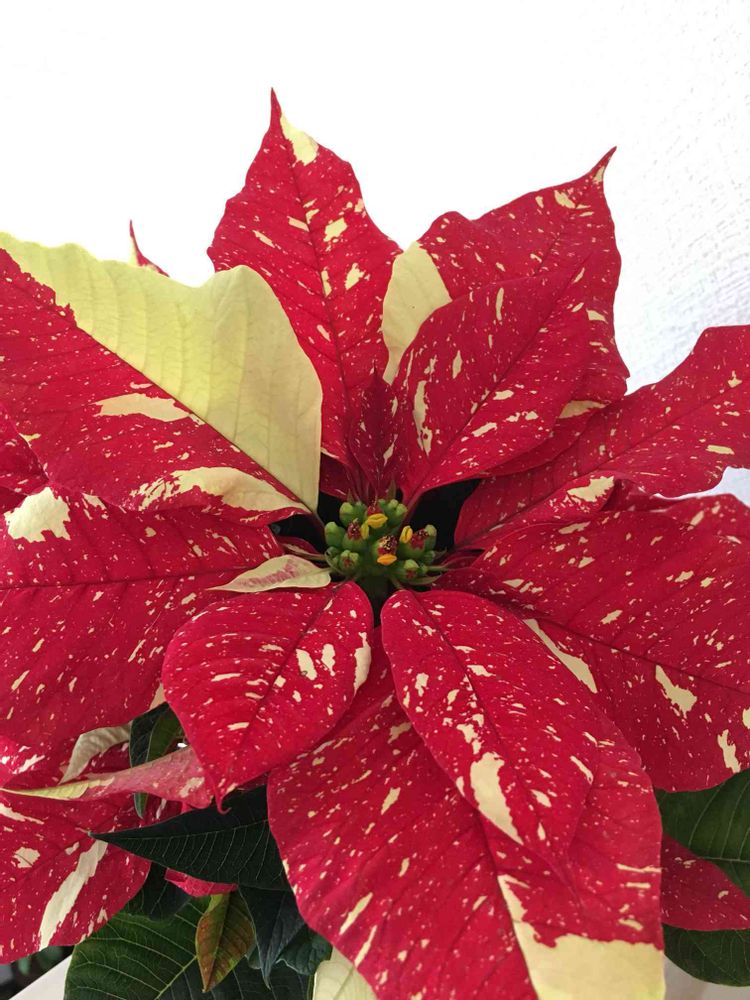 ポインセチアに雪❄が降ったみたいな絞りが入って素敵ですね~種類が増えたんですね❤😊