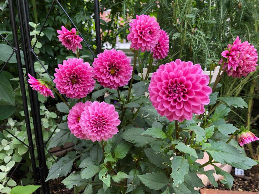 雨、風にも負けずにたくさんの花を咲かせてるダリア「ラベラ・ピッコロ」シリーズです💓