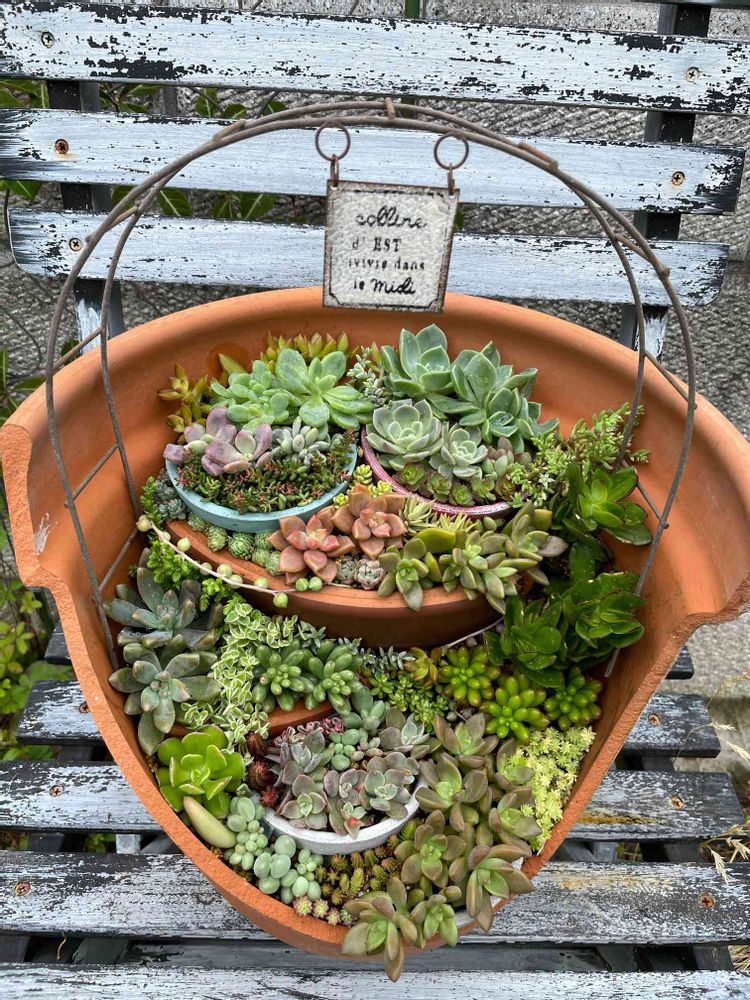 割れた鉢の寄せ集めで多肉タワーを作りましたd(˙꒳˙* )