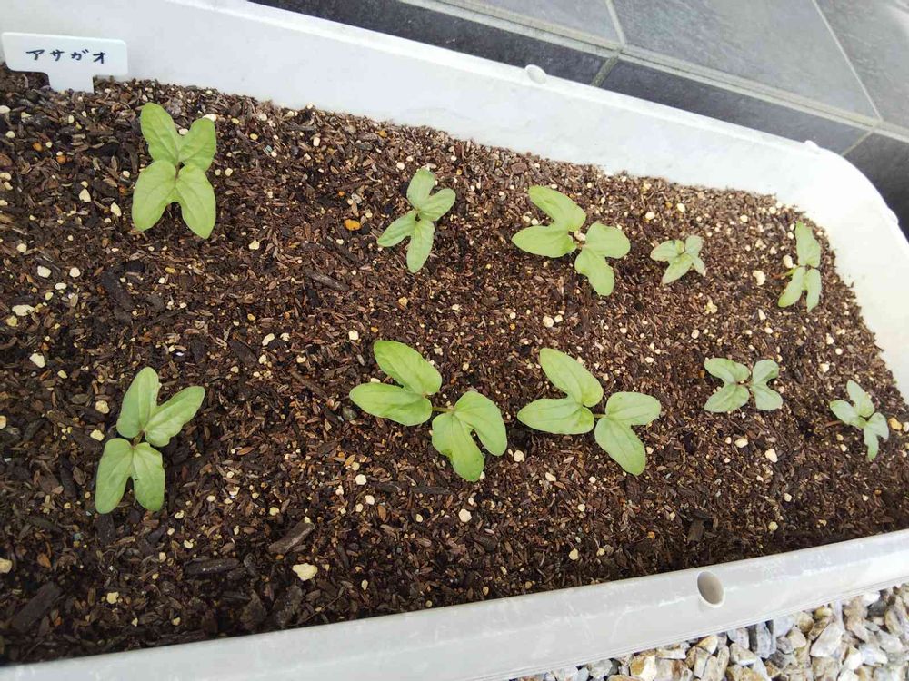 朝顔は種の殻が固いので水に浸したキッチンペーパーに2~3日浸けて、発根させてから植えました。